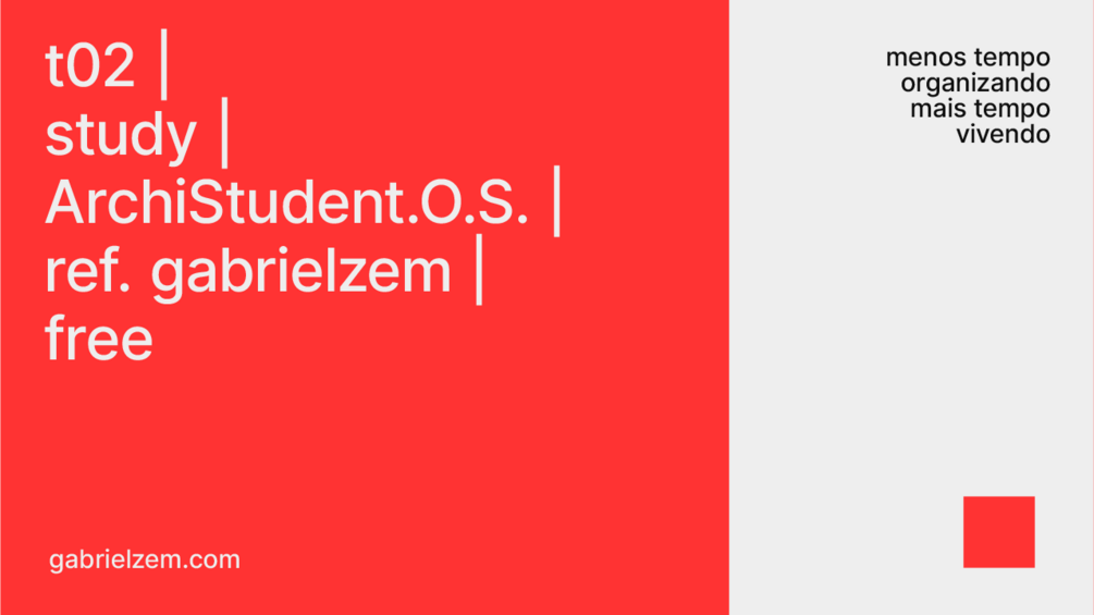 Por isso criei este template com um Sistema Operacional que o Gabriel de hoje entregaria para o Gabriel de 15 anos atrás, começando a faculdade de arquitetura. Pode não ser grande coisa ou não funcionar bem pra você, mas espero que te ajude a desligar um pouco da sombra dos prazos de entrega de projeto.